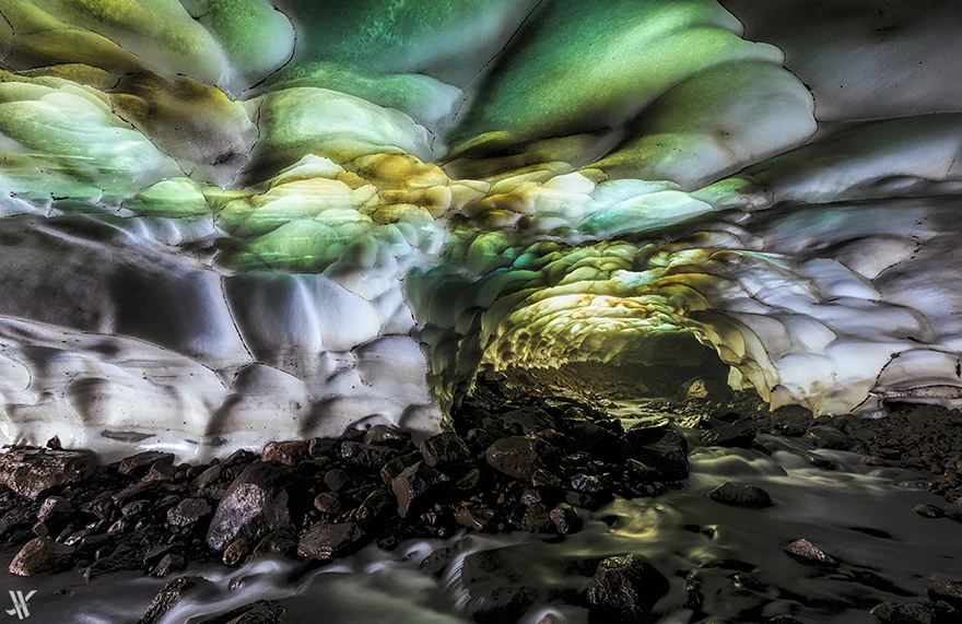 2. Hang động băng gần núi lửa Mutnovsky, Nga