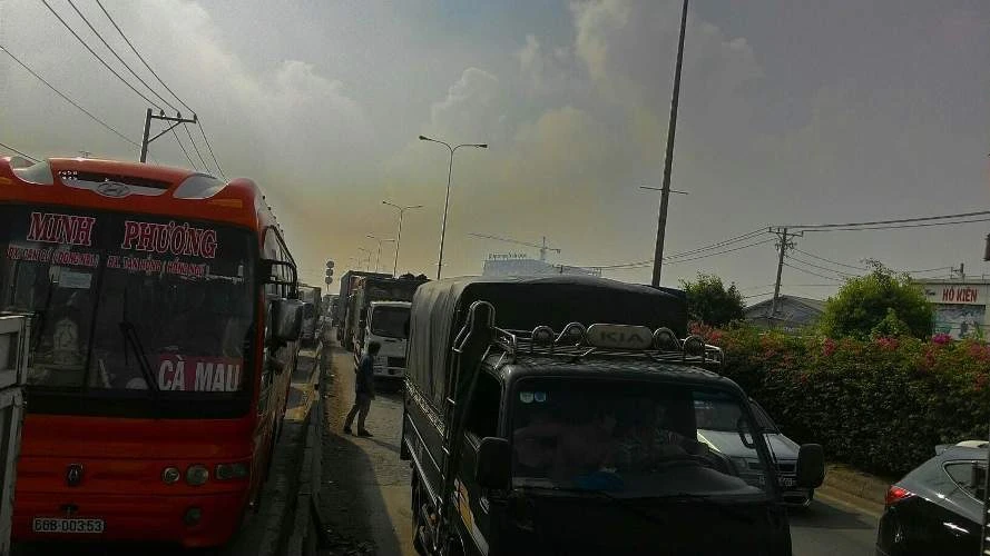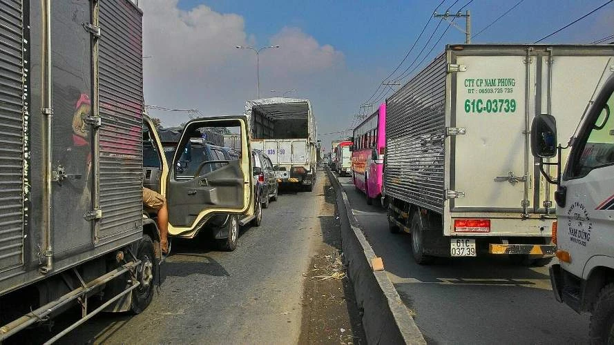 Theo bạn đọc này, khu vực kẹt xe bắt đầu từ cầu Bình Phước, kéo dài đến tận siêu thị metro cách đó nhiều km. "Kẹt xe quá nghiêm trọng, cánh tài xế tắt máy và ngủ luôn"- bạn đọc Huân thông tin.