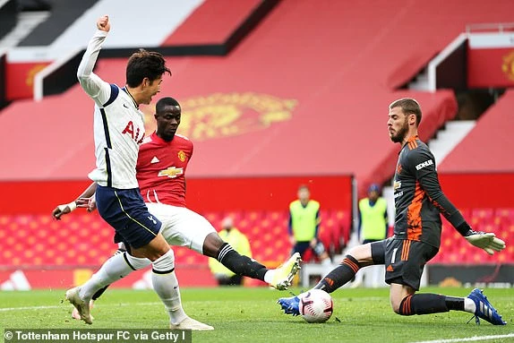 3 phút sau đó, lại là Maguire long ngóng không can thiệp pha tổ chức đá phạt nhanh của Tottenham để Harry Kane kiến tạo cho Son Heung-min thoát xuống sút bóng qua tay De Gea trong thế đối mặt nâng tỉ số lên 2-1 cho Tottenham.