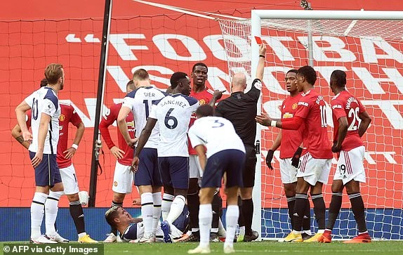 Trong tình huống Tottenham chuẩn bị đá phạt góc, Lamela đã tinh quái đánh nhẹ Martial, Martial lập tức phản ứng bằng pha đánh nguội Lamela. Chỉ chờ có thế, tiền vệ người Argentina lập tức ngã lăn ra sân ôm mặt, trọng tài không ngần ngại rút thẻ đỏ đuổi Martial. Lamela sau đó chỉ nhận thẻ vàng.