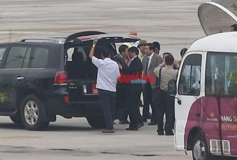Chiếc xe biển số TH -2809 chở Bộ trưởng Phùng Quang Thanh. Ảnh: Đặng Trung-Tuyến Phan