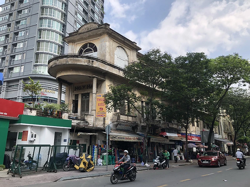 Khu nhà bốn mặt tiền: Trần Hưng Đạo, Ký Con, Yersin và Lê Thị Hồng Gấm của ông Nguyễn Văn Hảo tại quận 1 xuống cấp trầm trọng. Ảnh: QUỲNH TRANG