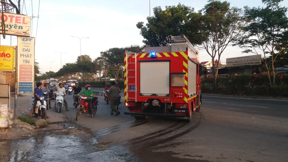 Nhiều xe cứu hỏa đã nhanh chóng có mặt tại hiện trường để hỗ trợ. ẢNH: THANH TUYỀN
