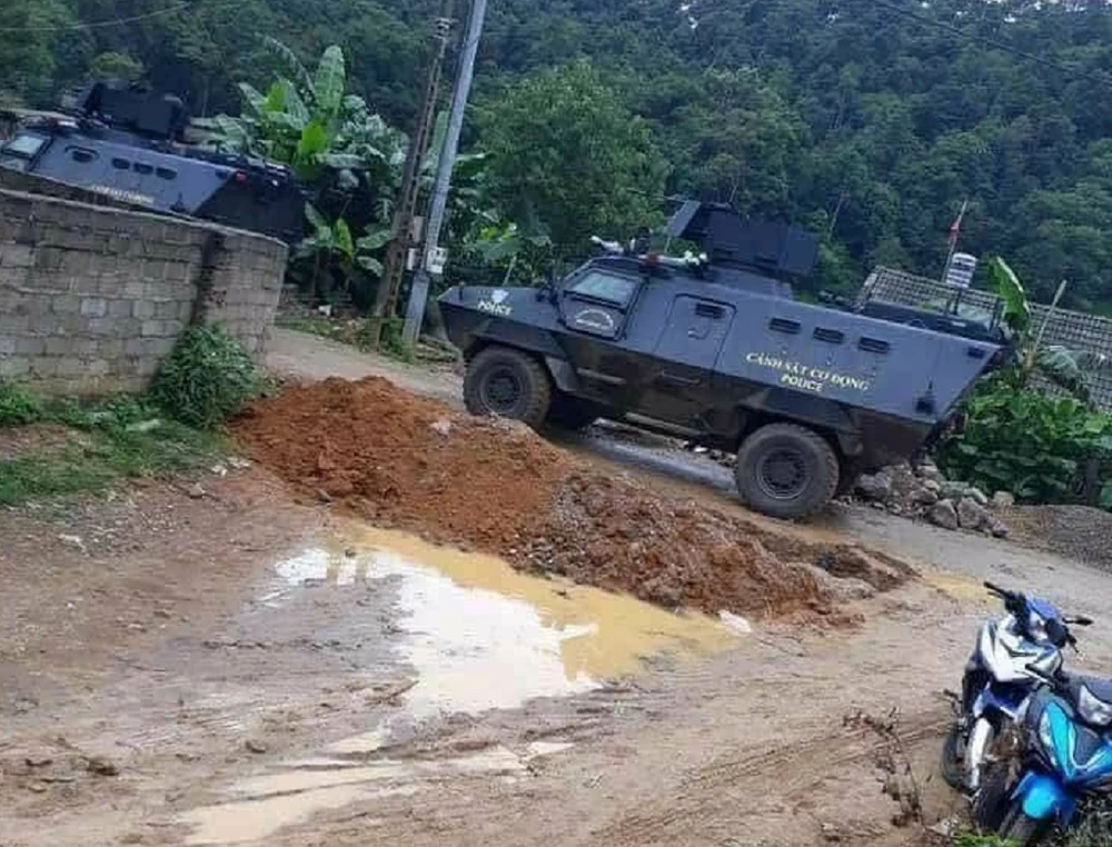 Xe đặc chủng được huy động để vây ráp các đối tượng. Ảnh FB