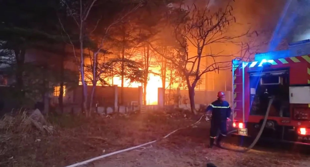 Ngọn lửa bao trùm nhà xưởng. Ảnh: CTV