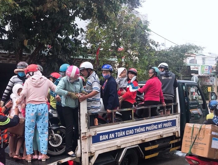 Tại thị xã Bến Cát, lực lượng công an đã huy động hàng trăm cán bộ, chiến sĩ giúp dân di chuyển tài sản đến nơi khô ráo. Đồng thời dùng các phương tiện đưa người dân di chuyển qua vùng ngập.