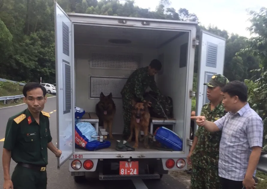 Xe của lực lượng chức năng liên tục quần đảo các đường trên đèo. Chó nghiệp vụ cũng được huy động trong việc tìm kiếm.