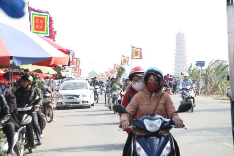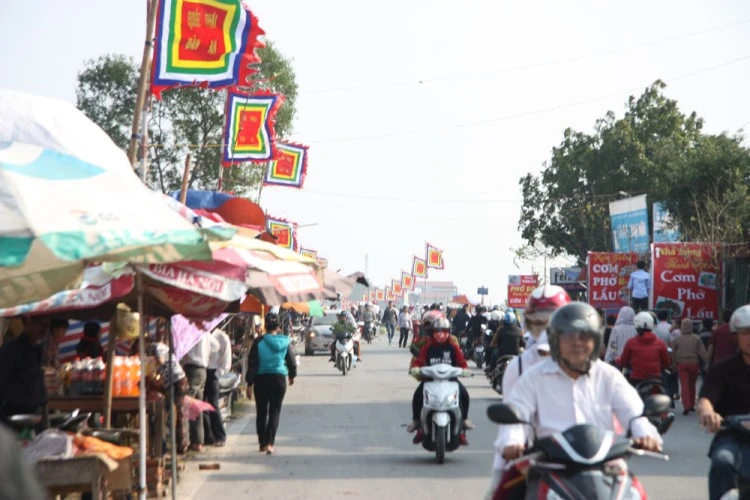 Con đường vào chợ Viềng người ra người vào tấp nập. Được biết, chợ Viềng là một nét đẹp văn hóa, hợp đầu năm.