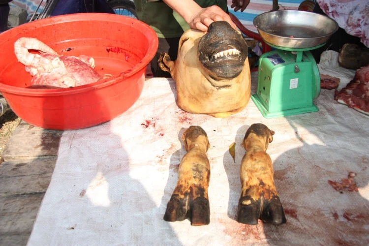 Những chiếc đầu, chân bê được bày ra một phần là bán, phần để khách tin và mua.