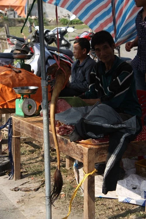 Đuôi bê cũng được treo lên lủng lẳng rao bán