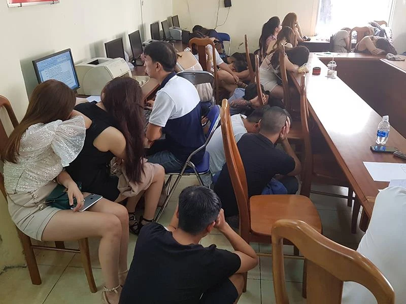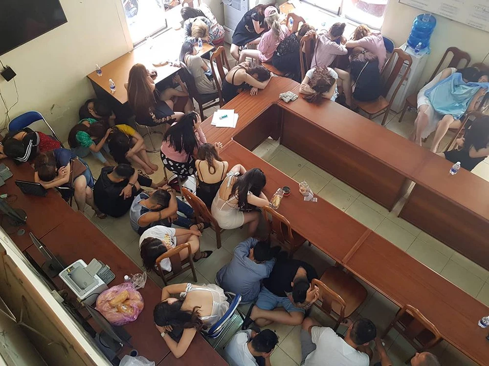 300 nam nữ có biểu hiện nghi vấn được đưa về trụ sở PC02 để làm việc. Qua kiểm tra nhanh, cảnh sát phát hiện hơn 200 người dương tính với ma túy.