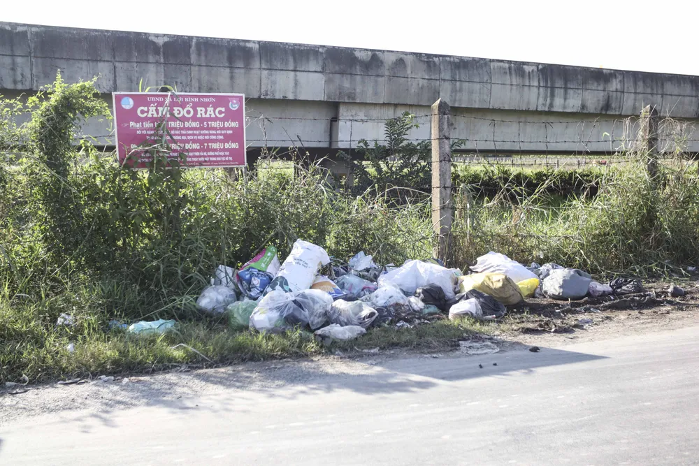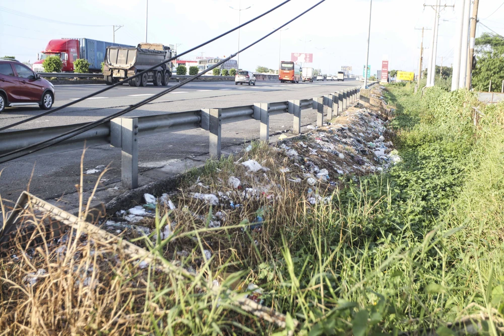 Những đoạn bị cắt và cặp theo hàng rào cao tốc làm nơi để người dân vứt rác bỏ nơi đây. Ảnh: HUỲNH DU |