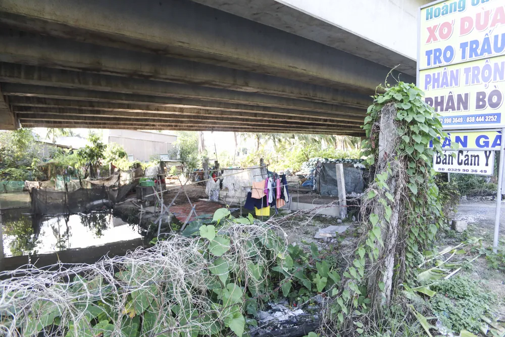 Khu vực được xem là mất cảnh quan dưới cao tốc TP.HCM – Trung Lương là đoạn cầu bắt qua Vàm Cỏ Tây, người dân chăn nuôi gia súc, gia cầm… vô tư ra vào khu vực cấm, khu vực nguy hiểm. Không những vậy, có cả bãi phế liệu, bãi chứa hàng hóa đang hoạt động bên trong hàng rào cao tốc.