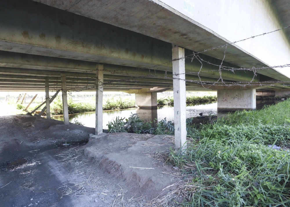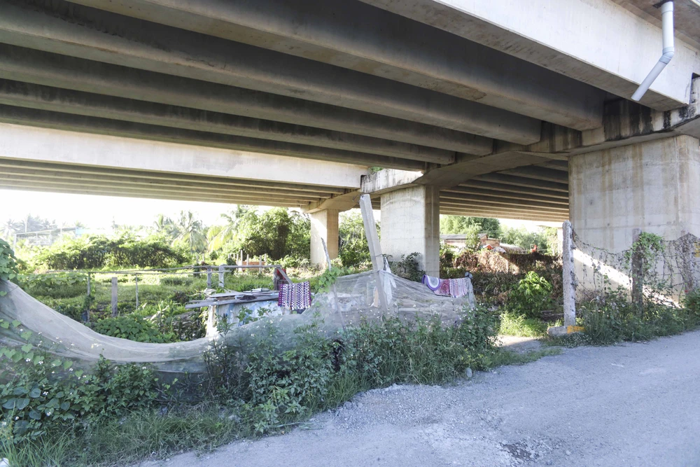 Lợi dụng bóng mát dưới gầm cầu, người dân đã cắt hàng rào, mở quán cà phê võng, để cho khách dừng nghỉ chân. Tại đây, được xem như một quán nghỉ chân ven đường.