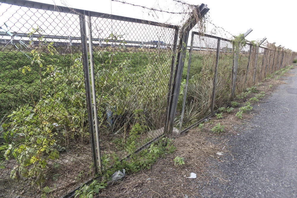 Cặp theo đường cao tốc, nhiều đoạn hàng rào thuộc địa bàn Xã Lợi Bình Nhơn (TP. Tân An) bị cắt, phá, bị ngã nghiêng hư hỏng. Ảnh: HUỲNH DU |