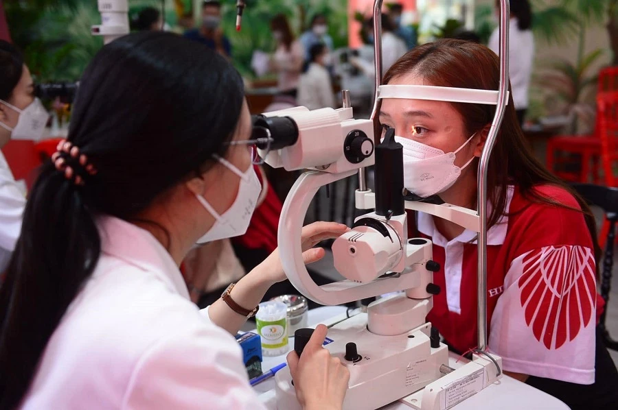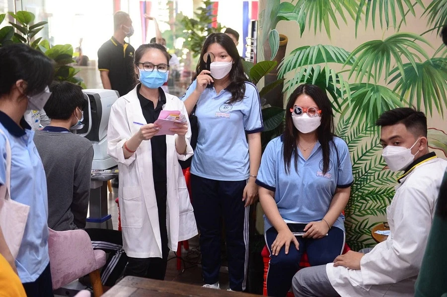 Học sinh, sinh viên được khám mắt miễn phí. Ảnh: NT
