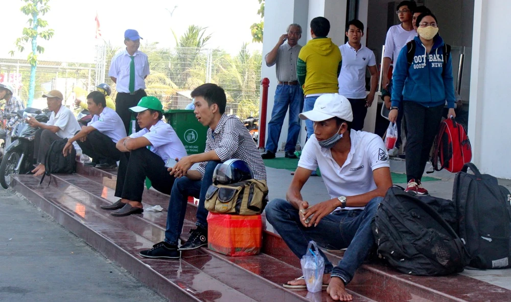 Do nóng lòng muốn lên xe đi nên nhiều hành khách không đủ kiên nhẫn để ngồi trong khu vực nhà chờ mà mang vác hành lý rồi kéo nhau ra hành lang để đợi xe. Một số hành khách mua vé đi chuyến buổi trưa 30-4 về TP.HCM nhưng đến hơn 14 giờ chiều cùng ngày mới được nhà xe thông báo mời lên xe. Còn một số hành khách mua vé 14 giờ chiều xe xuất bến nhưng đến tận 14 giờ 30 phút vẫn không thấy xe đâu.