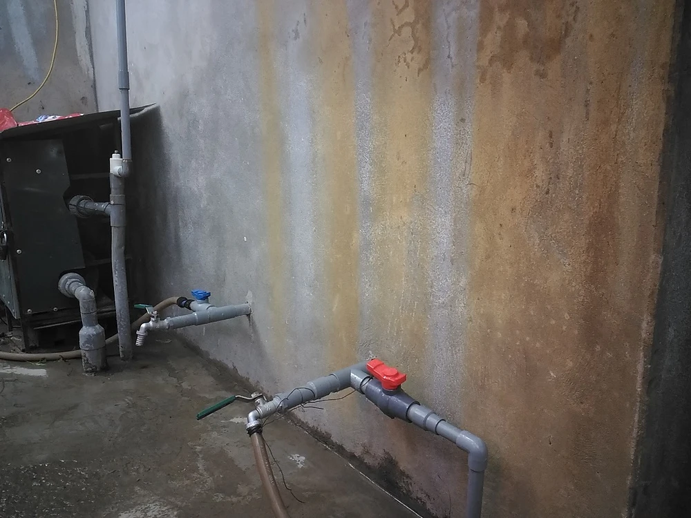 Nước từ giếng khoan sau khi lấy lên sẽ được đi qua một chiếc bể lọc (chủ yếu là cát và sỏi) rồi dẫn trực tiếp vào từng hộ gia đình. Tuy nhiên, do nguồn nước không đảm bảo, chiếc giếng dù mới được xây nửa tháng trở lại đây đã nhanh chóng bị ố vàng. Người dân cho biết dù đã được lọc qua nhưng nước vẫn rất tanh và có mùi khó chịu. Biết là không đạt chất lượng nhưng họ không còn sự lựa chọn nào khác ngoài việc sử dụng nguồn nước này.