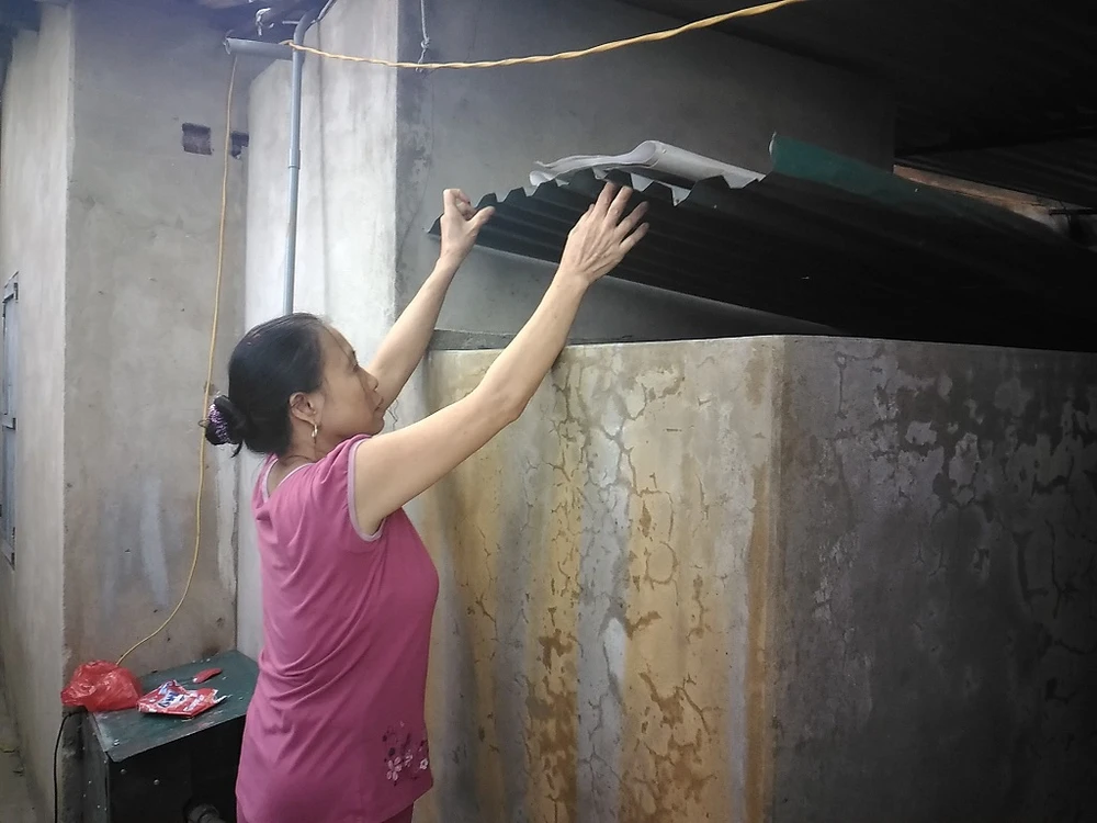 Bà Lê Thị Sáng (60 tuổi), người được coi là "cứu tinh" của nhiều hộ dân trong tổ dân phố. Bà Sáng là một trong những người đầu tiên bỏ tiền thuê thợ về khoan giếng, hiện chiếc giếng này đang phục vụ cho 4-5 hộ dân cùng sử dụng. Bà Sáng cho biết dù gia đình bà không ở đây nhưng thấy tình trạng mất nước diễn ra trong nhiều ngày liền, bà đã thuê thợ về khoan giếng để dùng tạm. Ngoài phục vụ cho mấy căn phòng cho thuê trọ, bà cũng cho những hộ dân chưa khoan được giếng dùng miễn phí.