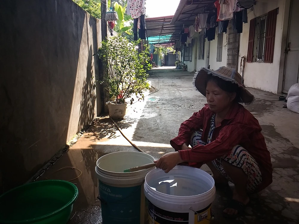Chị Đàm Thị Oanh (29 tuổi) cho hay tình trạng mất nước khiến cuộc sống các hộ dân trong khu vực bị đảo lộn, đi làm về không có nước nấu cơm, quần áo vài ngày mới giặt một lần, thậm chí việc tắm rửa cũng phải hạn chế. Hộ nào có điều kiện thì ra nhà nghỉ hoặc khách sạn để tắm, việc nấu ăn thì phụ thuộc hoàn toàn vào nguồn nước đóng bình đi mua. Mỗi tháng tiền nước đóng bình có thể lên tới vài trăm ngàn đồng.
