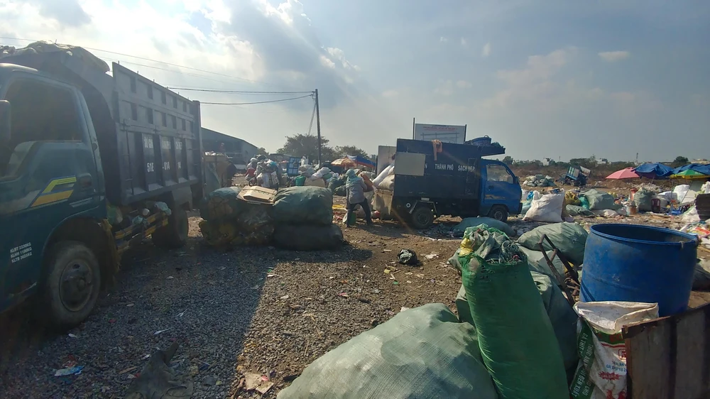 Hàng ngày có hàng chục xe chở rác ra vào tấp nập tại TTC này. Ảnh: NGUYỄN CHÂU