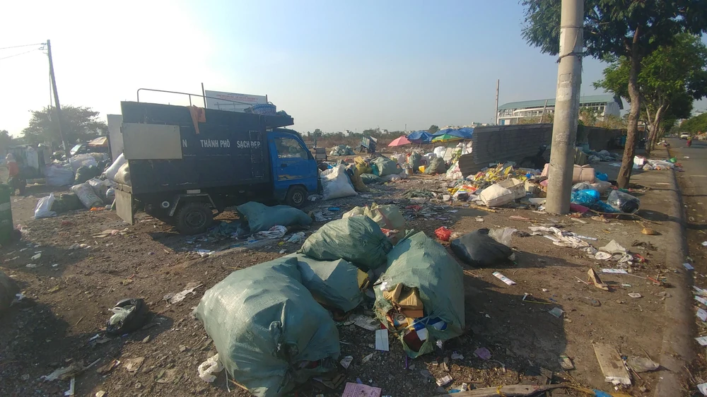 Đủ các loại rác như bao, bọc, bình, rác sinh hoạt… được đổ ngổn ngang tại bãi. Ảnh: NGUYỄN CHÂU