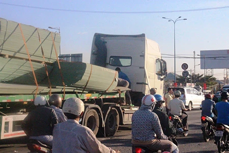 Thông tin ban đầu, 15 giờ 30 ngày 25-1, xe Container BKS: 51C - 638.38 chở theo hàng trăm miếng ván ép chạy trên QL 1A theo hướng đi Đồng Nai về TP.HCM. Khi qua ngã ba 621 (phường Linh Trung, quận Thủ Đức, TP.HCM) khoảng 100 mét thì tài xế bất ngờ phanh gấp khiến cho khối lượng lớn ván ép trên xe dồn tới trước, dây chằng bị bung, hàng trăm tấm ván ép tràn xuống đường.