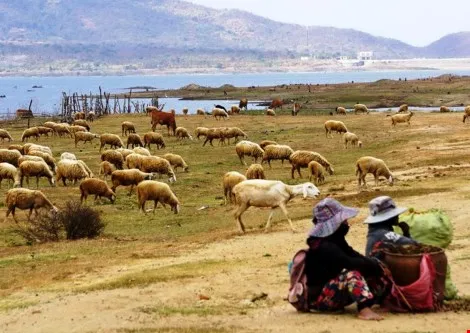 Hồ Sông Sắt có dung tích 70 triệu m3 nước (gần 40% tổng dung tích các hồ chứa toàn tỉnh Ninh Thuận) giờ chỉ còn lại thế này. Ảnh: Hoàng Tâm