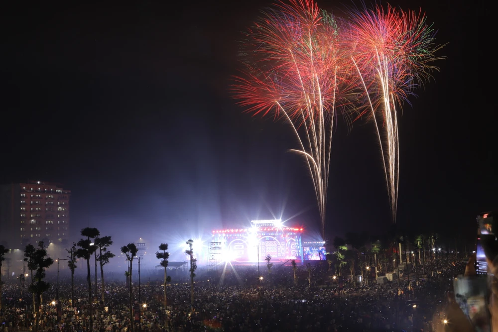 Hàng vạn người dân người dân, du khách đã "Thăng hoa - Tỏa sáng" cùng bờ biển dài tít tắp được thắp sáng và rực rỡ sắc màu chào đón mùa du lịch Sầm Sơn năm 2023. |
