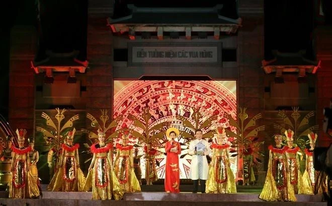Chương trình nghệ thuật sân khấu hóa đặc sắc gồm 3 chương: Hùng thiêng Âu Lạc; Nhớ về quê cha đất Tổ; Bay lên nòi giống Tiên Rồng. Những ca khúc như: Huyền sử Âu Lạc, Thánh Gióng ra trận, bánh chưng bánh dày và ca cảnh Mai An Tiêm, Việt Nam ngôi nhà chung, Mùng Mười Tháng Ba, đất nước Hùng Vương đất nước Bác Hồ, Bay lên nòi giống Tiên Rồng, giai điệu tự hào, liên khúc Quốc Tổ Hùng Vương - Việt Nam ơi chân trời rộng mở... qua phần thể hiện NSƯT Tấn Giao, NSƯT Hữu Quốc, NSƯT Vân Khánh, NSƯT Tạ Minh Tâm… Cùng các ca sĩ Trung Kiên, Võ Hạ Trâm, Lưu Hiền Trinh, Kasim Hoàng Vũ, Phạm Thế Vĩ,…