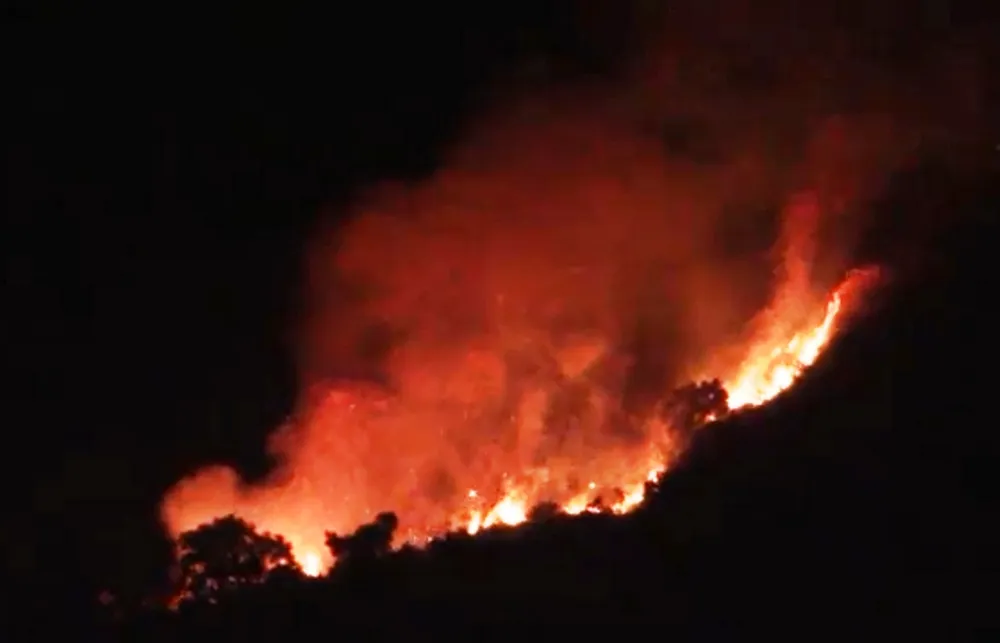 Cháy bùng phát dữ dội thiêu rụi rừng trong đêm. Ảnh: HẢI HIẾU.
