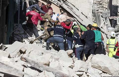 12 giờ ngày 24-8, Thủ tướng Ý Matteo Renzi đã phát biểu cảm ơn các lực lượng cứu hộ và nhân viên cứu hỏa nhanh chóng đến hiện trường. Đức Giáo hoàng Phanxicô đã phát biểu chia buồn. Tổng thống Pháp François Hollande tuyên bố Pháp sẵn sàng giúp Ý trong những giờ tới. Nhiều nước đã gửi lời chia buồn đến Ý.