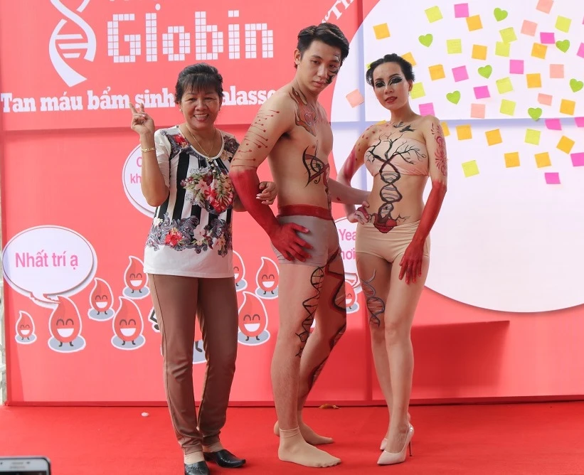 Công trình body painting của hai bạn trẻ nâng cao nhận thức về bệnh tan máu bẩm sinh. Ảnh: TT