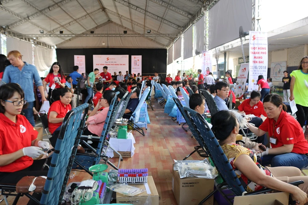 Hàng trăm người dân TP.HCM đến hiến máu tại ngày hội. Ảnh: TT