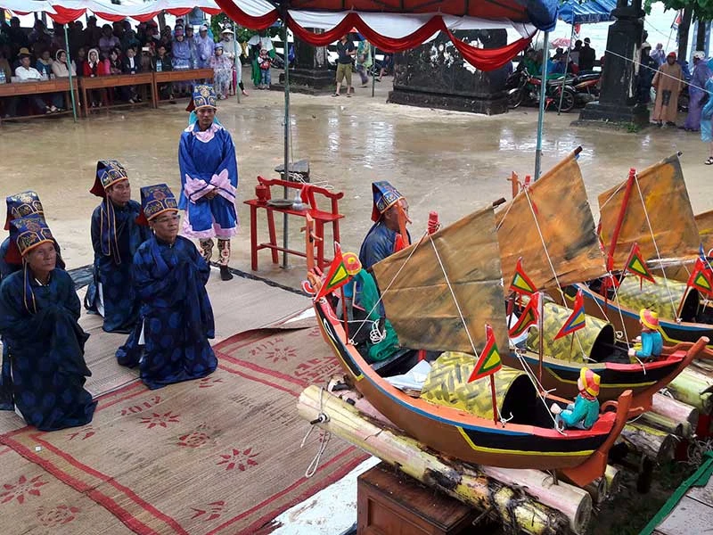 Sau phần chủ lễ đọc sớ, lần lượt các dòng, tộc trên địa bàn xã An Hải có người thân ra sa trường năm xưa đã thực hiện nghi lễ cúng tế, rước các hình nhân thế mạng và mô hình thuyền để thả trôi ra biển. Riêng phần lễ đua thuyền tứ linh có sự tham gia của gần 100 vận động viên, chia làm bốn đội. Các đội đua thuyền trong khoảng chiều dài 800 m dọc bờ biển, mỗi thuyền phải hoàn thành bốn vòng đua để phân định đội về đích trước.