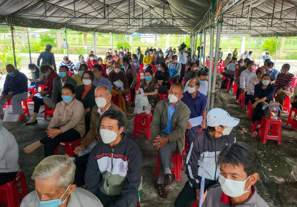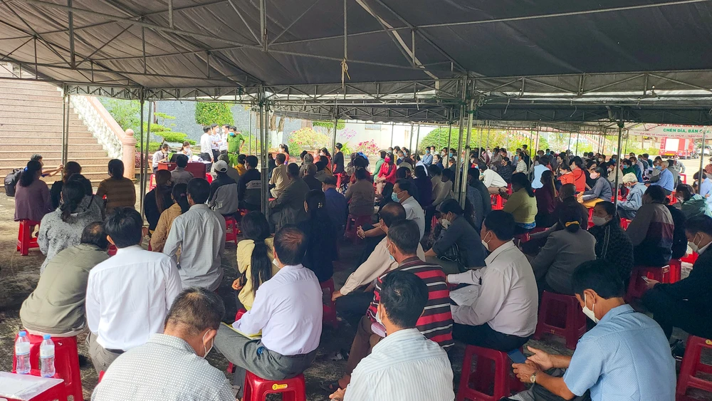 Hàng trăm bị hại ở các tỉnh Cà Mau, Bạc Liêu, Trà Vinh, Hậu Giang... đến tham dự phiên tòa.