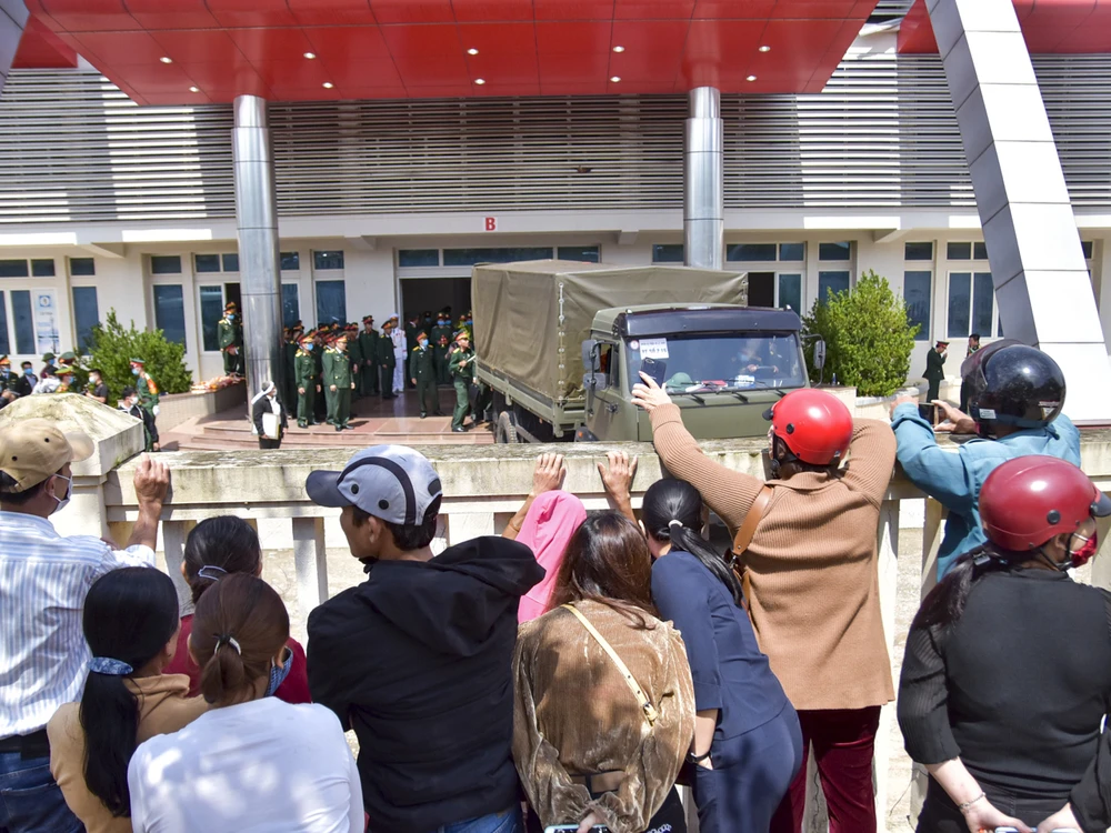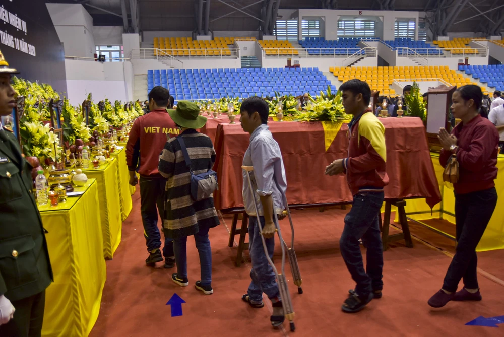 Đồng đội, lực lượng chức năng và người dân đến viếng các liệt sỹ. Ảnh: NGUYỄN DO