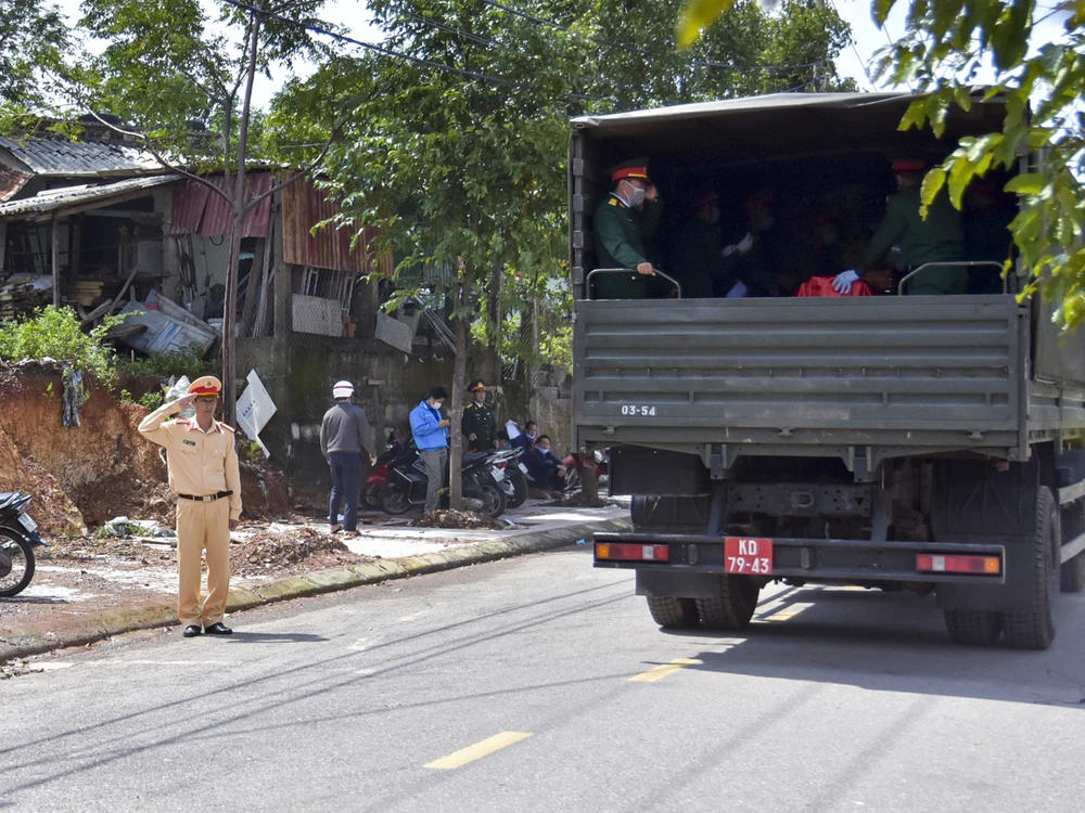Di quan các liệt sĩ về với địa phương. Ảnh: NGUYỄN DO