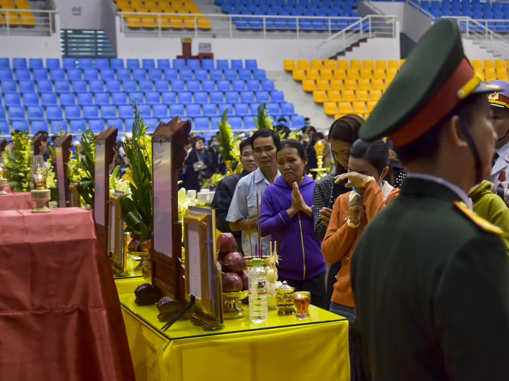Người thân các liệt sĩ tại lễ truy điệu. Ảnh: NGUYỄN DO