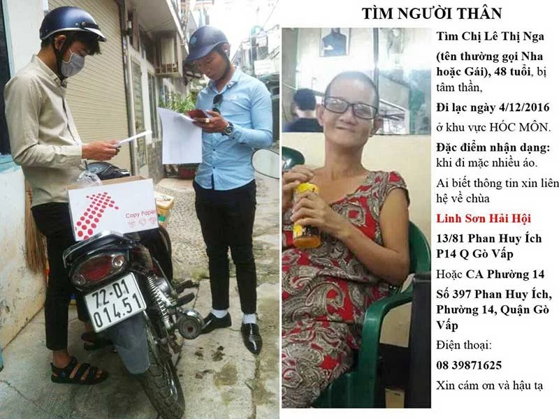 Biết đến hoàn cảnh của hai mẹ con bà Năm từ trước, khi nghe tin, chị Mai Lộc, nhóm từ thiện Làm đẹp giúp đời, liền đến an ủi bà và đăng thông tin lên Facebook của mình, nhờ các nhóm thiện nguyện khác đăng giúp lan tỏa. Chị quyết định trích tiền quỹ nhóm để in ra hơn 1.500 tờ rơi và thuê các bạn sinh viên phụ đi tìm chị Gái từ quận Gò Vấp lên huyện Hóc Môn và chạy dài đến Bến xe Miền Đông. Khi nghe hoàn cảnh cụ bà tìm con, các bạn sinh viên rất nhiệt tình và chỉ xin lấy ít tiền để bù vào xăng xe.