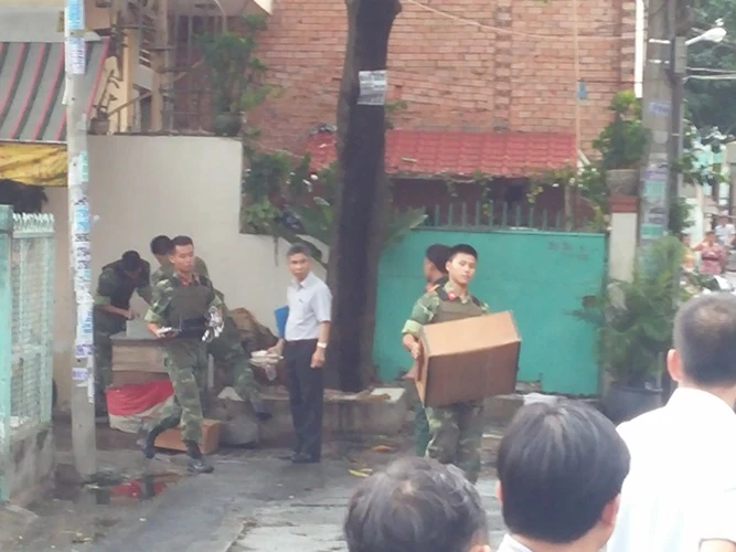 Nhận được tin báo, công an phường 13, công an quận 6, Ban chỉ huy quân sự quận, dân phòng, dân quân và chính quyền địa phương lập tức có mặt, phong tỏa hiện trường để tiếp cận “vật lạ” nhằm xử lý.