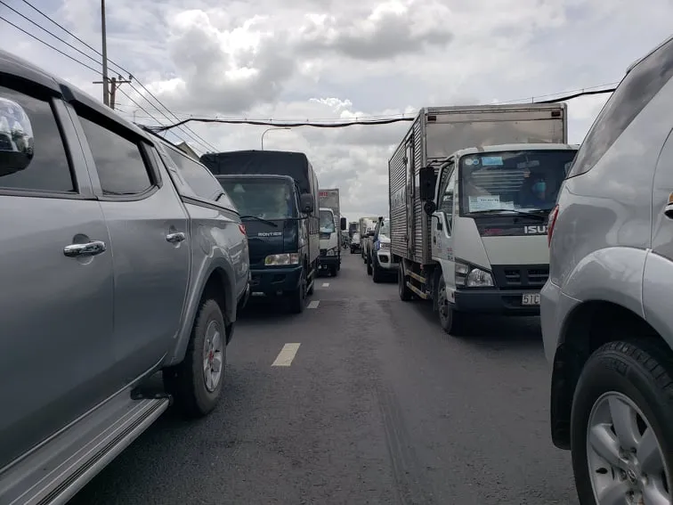 “Tôi đi qua cầu vượt Sóng Thần để về Bình Dương thì bị chốt ở đây kiểm tra nên quay về hướng cầu Vĩnh Bình nhưng cũng không được qua. Giờ vợ chồng phải qua thử cầu Đồng Nai để về Lâm Đồng rồi qua Đắk Lắk chứ ở Sài Gòn cũng thất nghiệp rồi”- anh H. nói thêm.