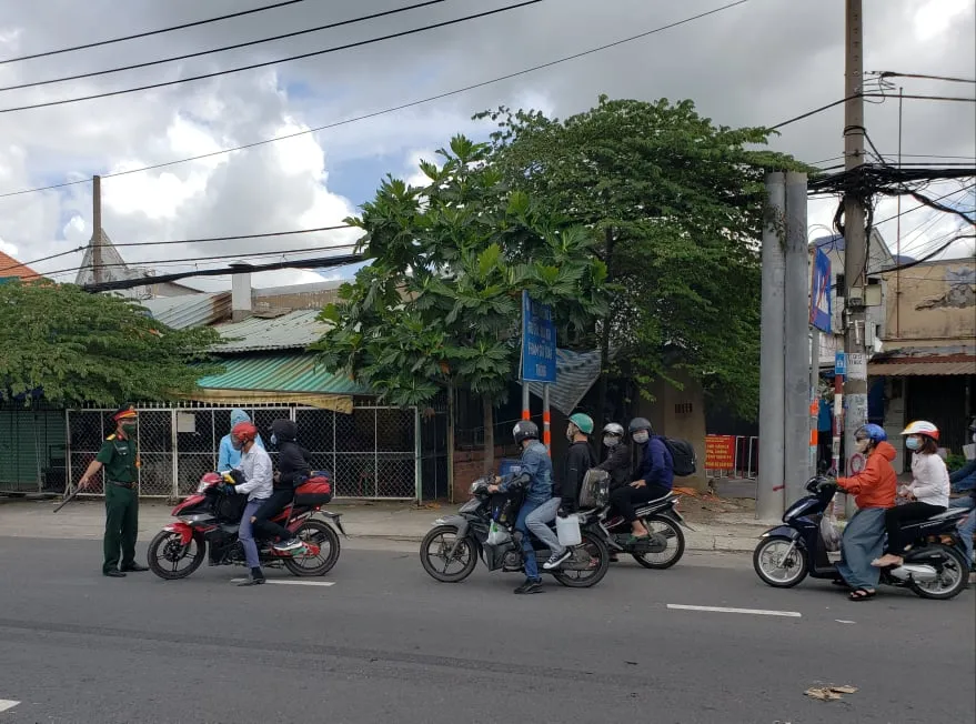 “Không được đi về quê tự ý đâu anh ơi, phải có đoàn địa phương dẫn đi” - một nhân viên kiểm soát tại chốt chặn xe người này giải thích. Người này sau đó giải thích một hồi rồi quay xe đi về hướng cầu Đồng Nai.