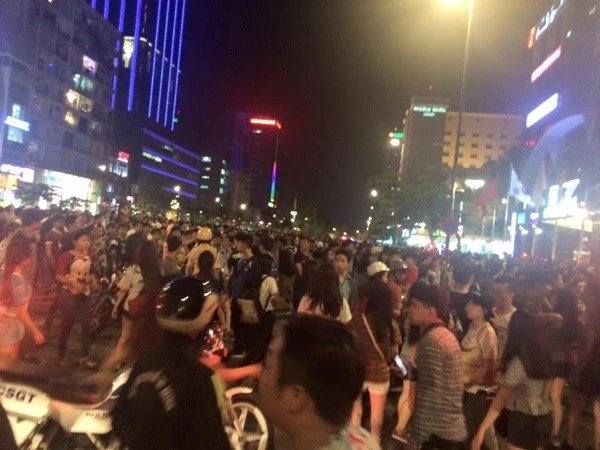 Tối 3-8, phố đi bộ Nguyễn Huệ đông nghẹt người. Ảnh: Tường Yên