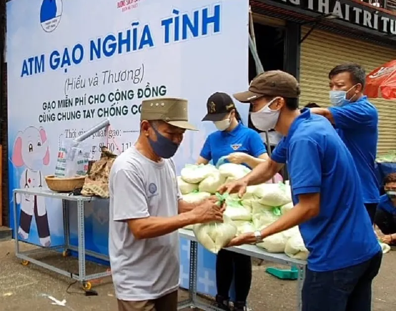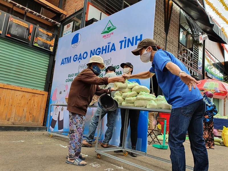 "ATM gạo nghĩa tình" cho những hoàn cảnh khó khăn trong những ngày cách ly xã hội phòng, chống dịch COVID-19.