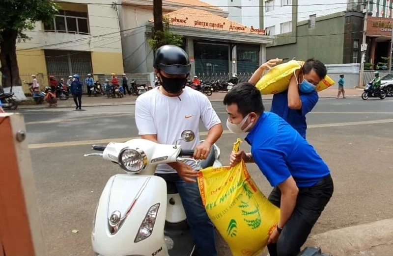 Trong chiều 13-4, cả trăm hoàn cảnh khó khăn trên địa bàn TP Buôn Ma Thuột được nhận gạo.