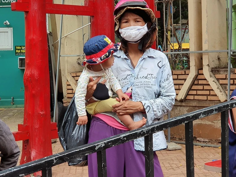 Bà Nguyễn Thị Hòa, một người đến nhận gạo, cho hay hai chị em bà bán rau ở chợ nhưng vào những ngày này rất khó khăn. Khi nghe có chương trình phát gạo miễn phí cho người nghèo, bà đã đi gần 5 cây số để đến đây.