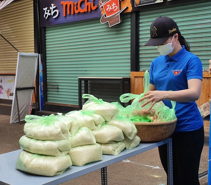 Mỗi hoàn cảnh khó khăn sẽ được nhận 2 kg gạo mỗi ngày. Sau khi sử dụng hết có thể đến để xếp hạng để nhận tiếp.