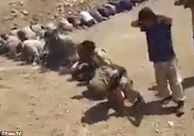 Hình ảnh trong video cho thấy hàng trăm người được cho là chiến binh IS đầu hàng quân đội Iraq ở thị trấnal-Ayadieh. Ảnh: Daily Mail