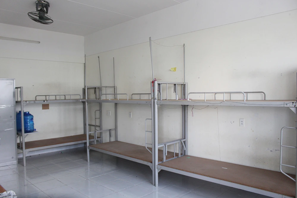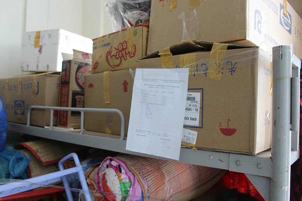 Mỗi phòng diện tích khoảng 25 m2 với rất nhiều đồ đạc, hành lý của các bạn sinh viên đã về quê theo đề nghị của ký túc xá.